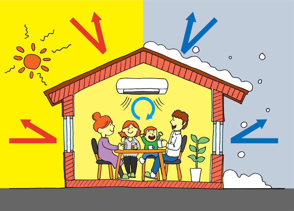 この高い断熱性能によって、外の暑さや寒さの影響を室内に伝えにくくなり、少しの冷暖房で一年中快適な室温を保つことが可能です。