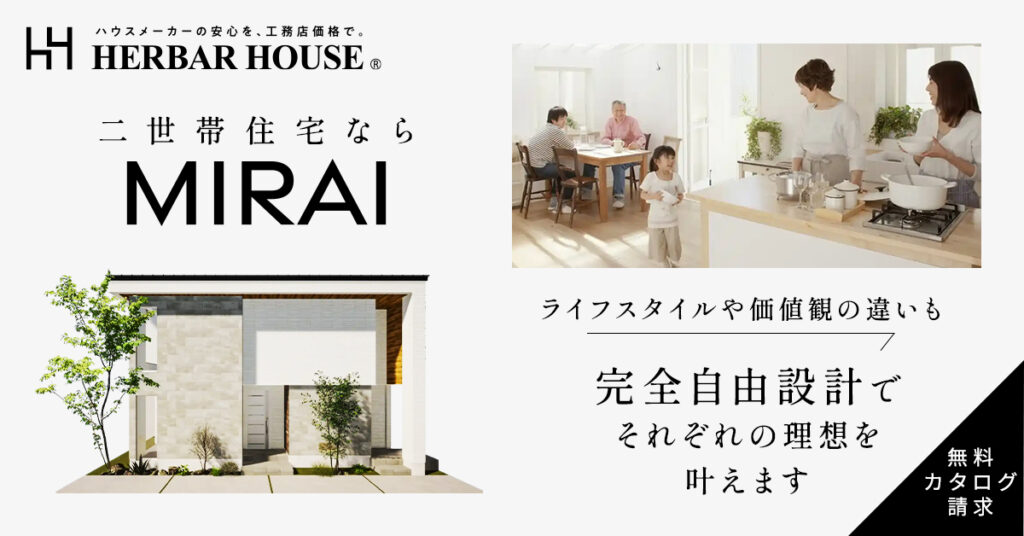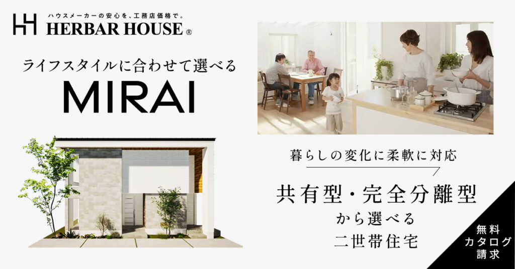 ハーバーハウスでは、二世帯住宅の商品「MIRAI」をご用意しております。