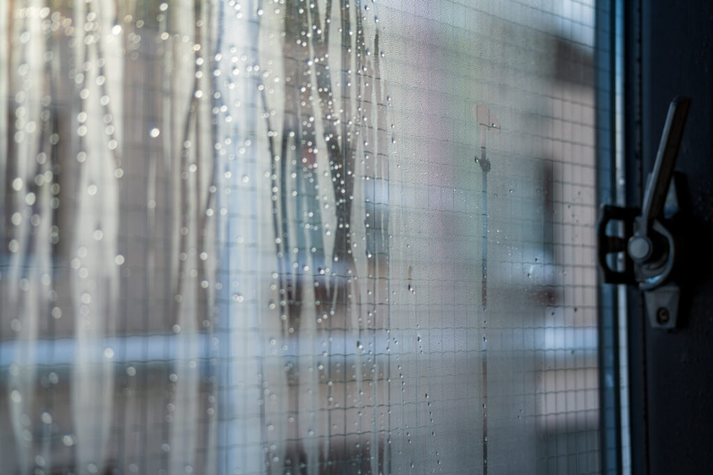 結露は室内の暖かい空気が冷たい窓ガラスに触れることで発生します。
