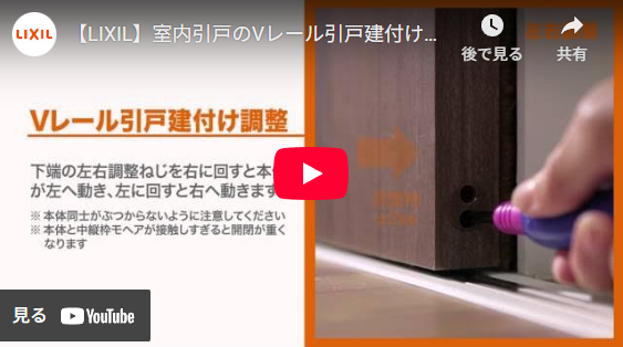 ご自身で試していただけるよう、ドア・引戸の建付け調整方法を動画でまとめました。