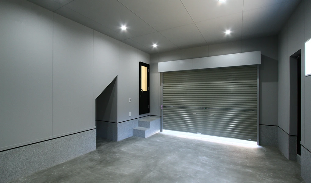 バイクやタイヤの保管スペースも確保した、シャッター付きの広いインナーガレージを設計。リビング直結のため、玄関を通らずスムーズに出入りすることができます!