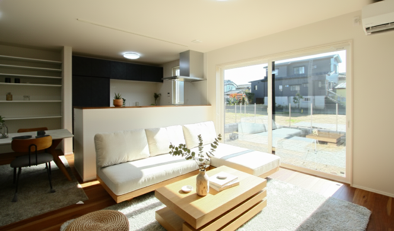 コンクリート調×木調の外観がおしゃれな、多収納でスッキリ片付く家(長岡市宮関)
