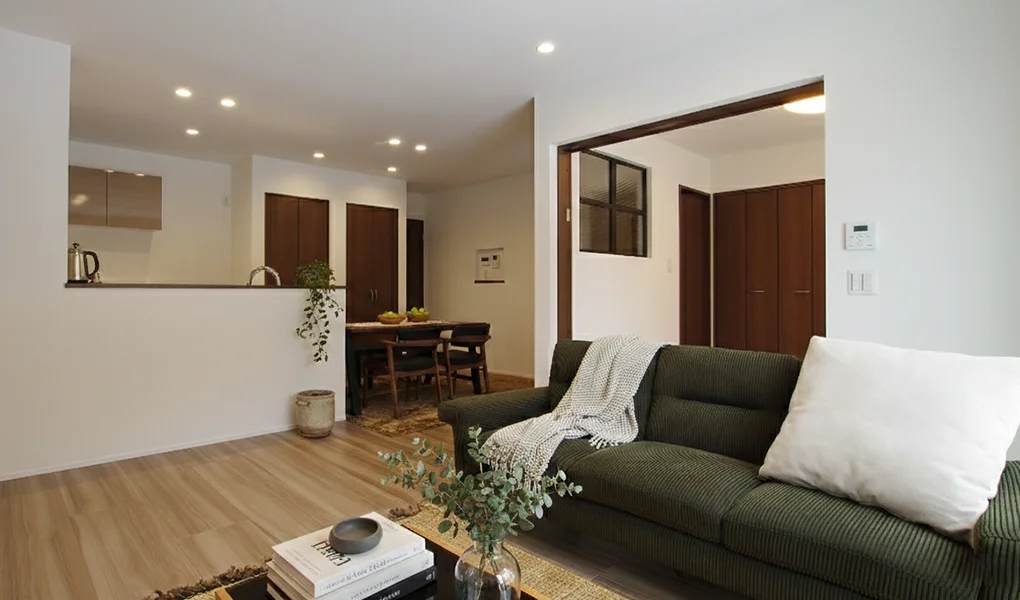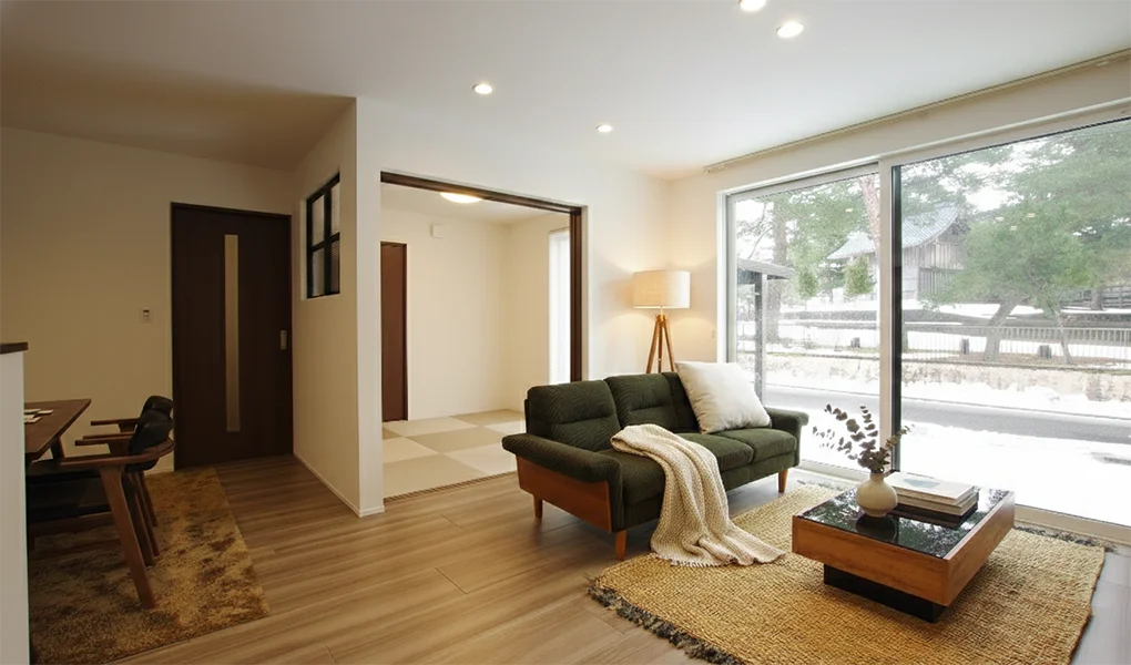 塗り壁×オーガニックインテリアが映える29帖LDK!吹き抜け&大開口でも冬も暖かい高気密住宅(新潟市北区)