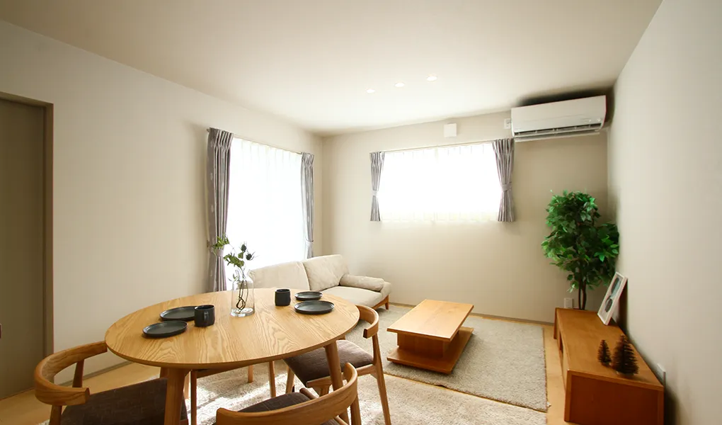塗り壁×オーガニックインテリアが映える29帖LDK!吹き抜け&大開口でも冬も暖かい高気密住宅(新潟市北区)