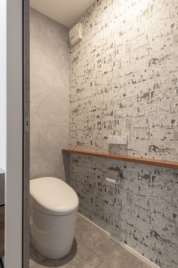 ムーミンのクロスで壁が漫画になってるので、娘も一緒に入って、