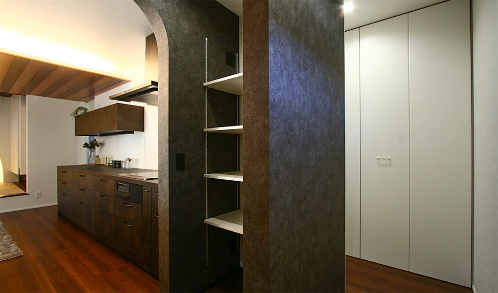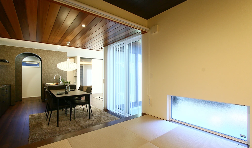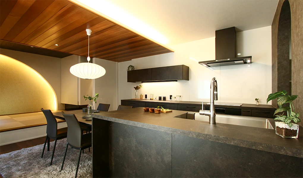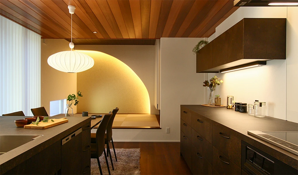 和モダンなインテリアに、R垂れ壁でおしゃれに仕上げた小上がり和室は必見です。
